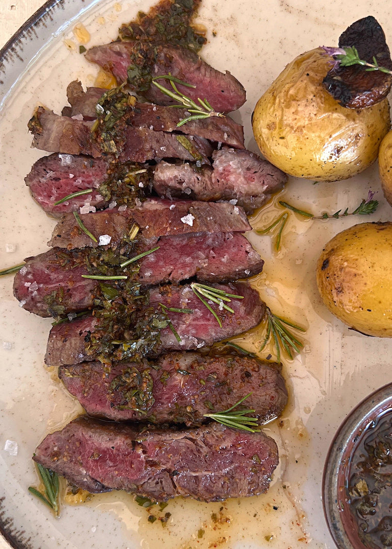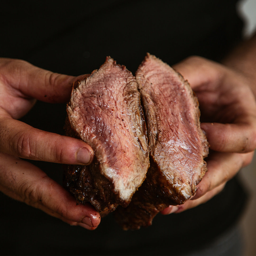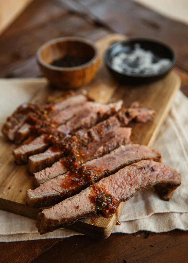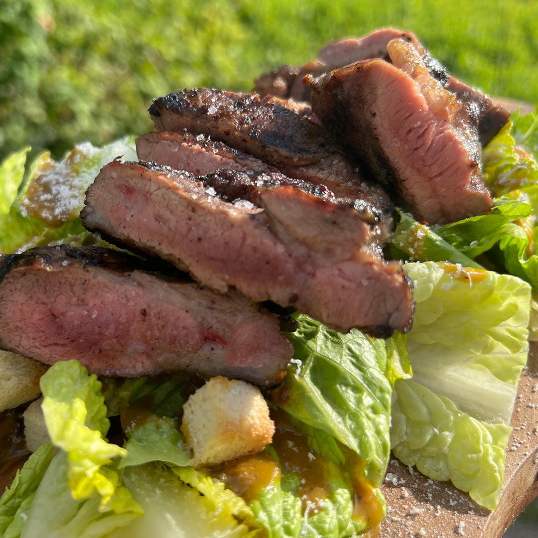 - When the meat is ready on the bone side, turn it over using tongs or a fork.