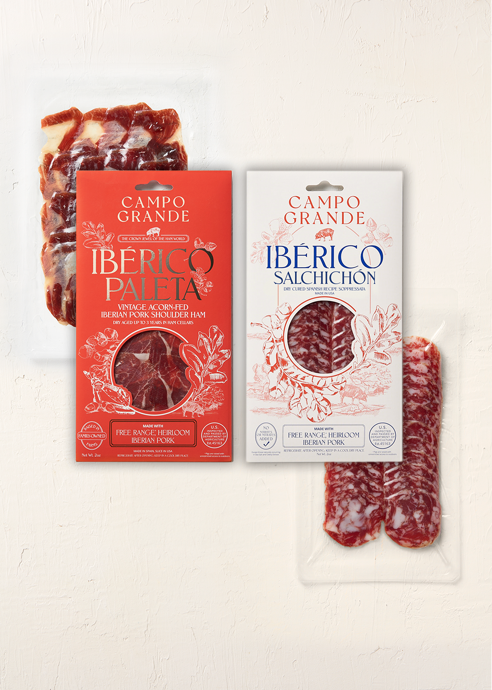 - 2 × (2 oz) Sliced Salchichón: Delicate, peppery Salchichón — a dry-cured Ibérico sausage with a smooth texture and subtle spice.