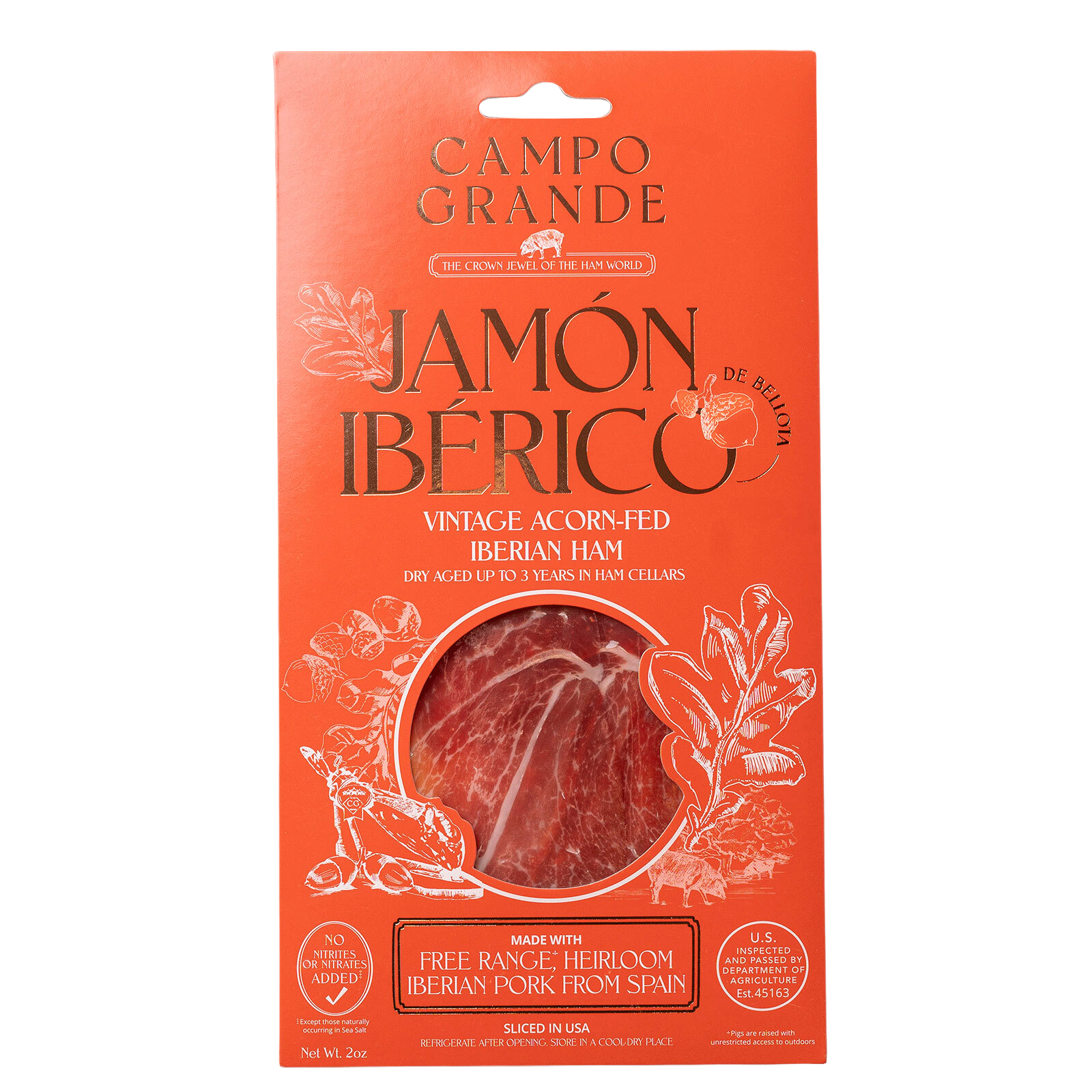 - 2 × (12 oz) Sliced Jamón: Dry-aged Ibérico ham from the hind leg, sliced thin for a rich, savory bite.