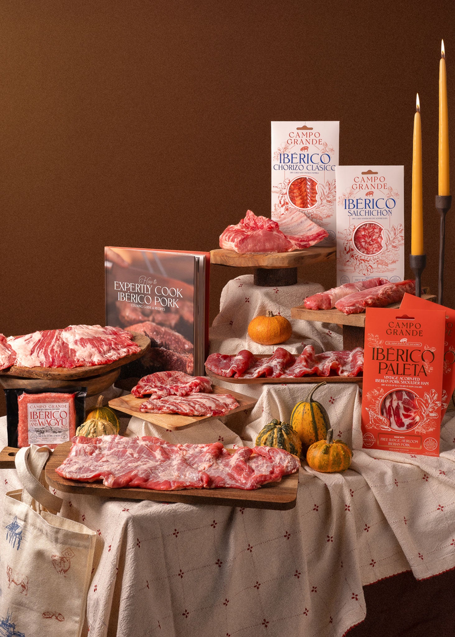 - 1 x Ibérico 4-Bone Ribeye Rack: (24–33oz) Cut your own pork chops or Roast the whole piece.
